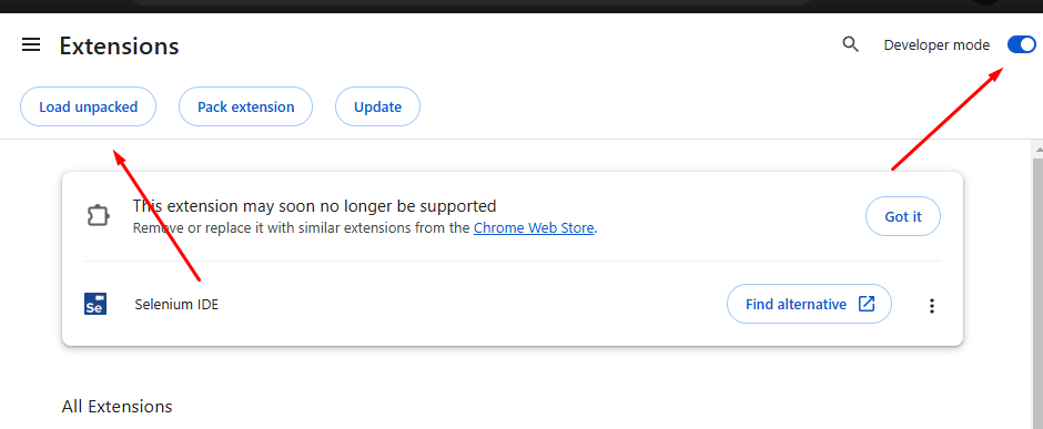 + Open chrome in the extension management path: "chrome://extensions/", open "Developer mode" => select "Load unpacked".